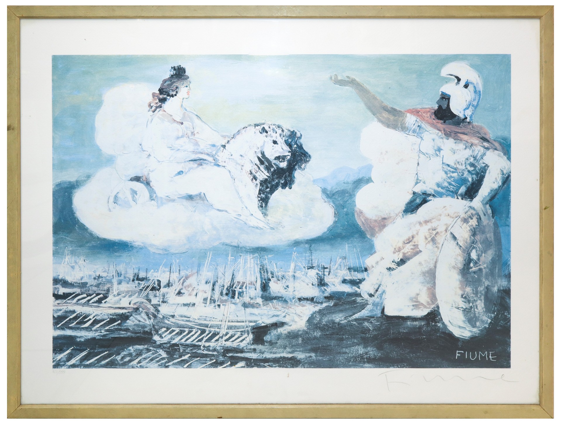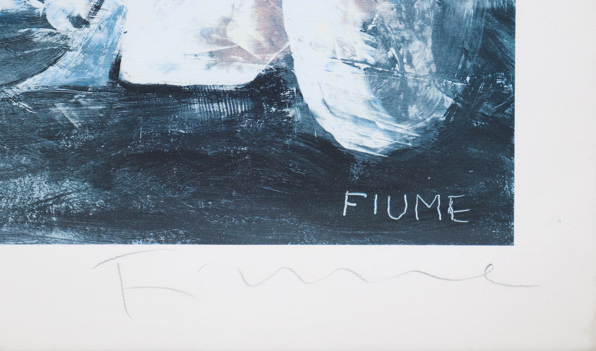 Salvatore Fiume (Comiso 1915-Milano 1997) - Eneide 721/999 cm 60x80 litografia su carta filagranata Opera inedita che appartiene al ciclo di 15. Carta filigranata prodotta appositamente per il maestro della Cartiera Magnani. Ogni opera è numerata con numero arabo e reca la firma autografa a matita del maestro; sul retro, a garanzia di autenticità, l'opera porta il timbro dichiarante la tecnica di esecuzione, pure controfirmato a matita del maestro.