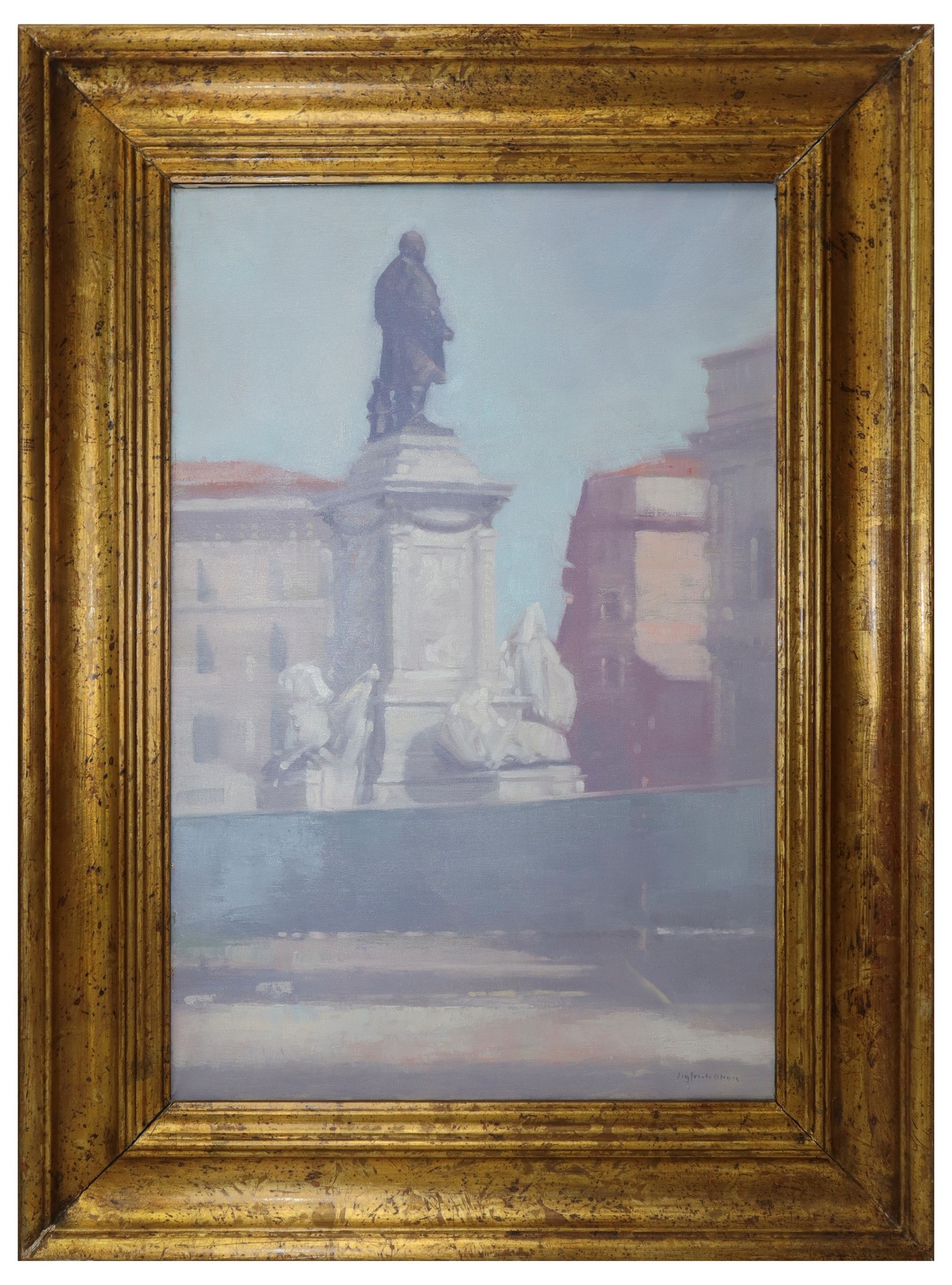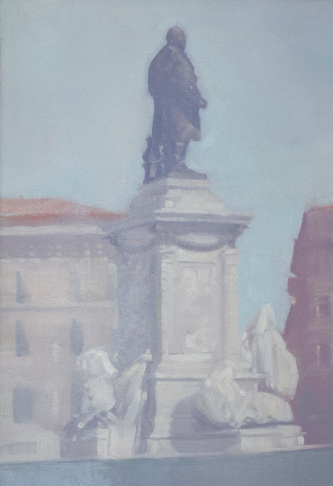 Sigfrido Oliva (Messina 1942) - Monumento a Cavour, 2007 Cm 60 x 40, in cornice cm 82 x 58 Olio su tela