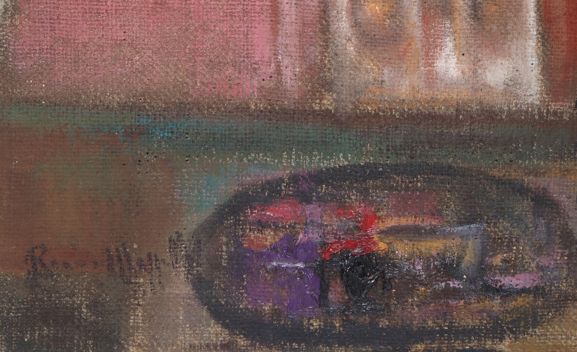 Rosario Mazzella (Napoli 1932-2021) - Il camino-interno di Gezzano cm 60 x 50 Tecnica mista su tela di iuta