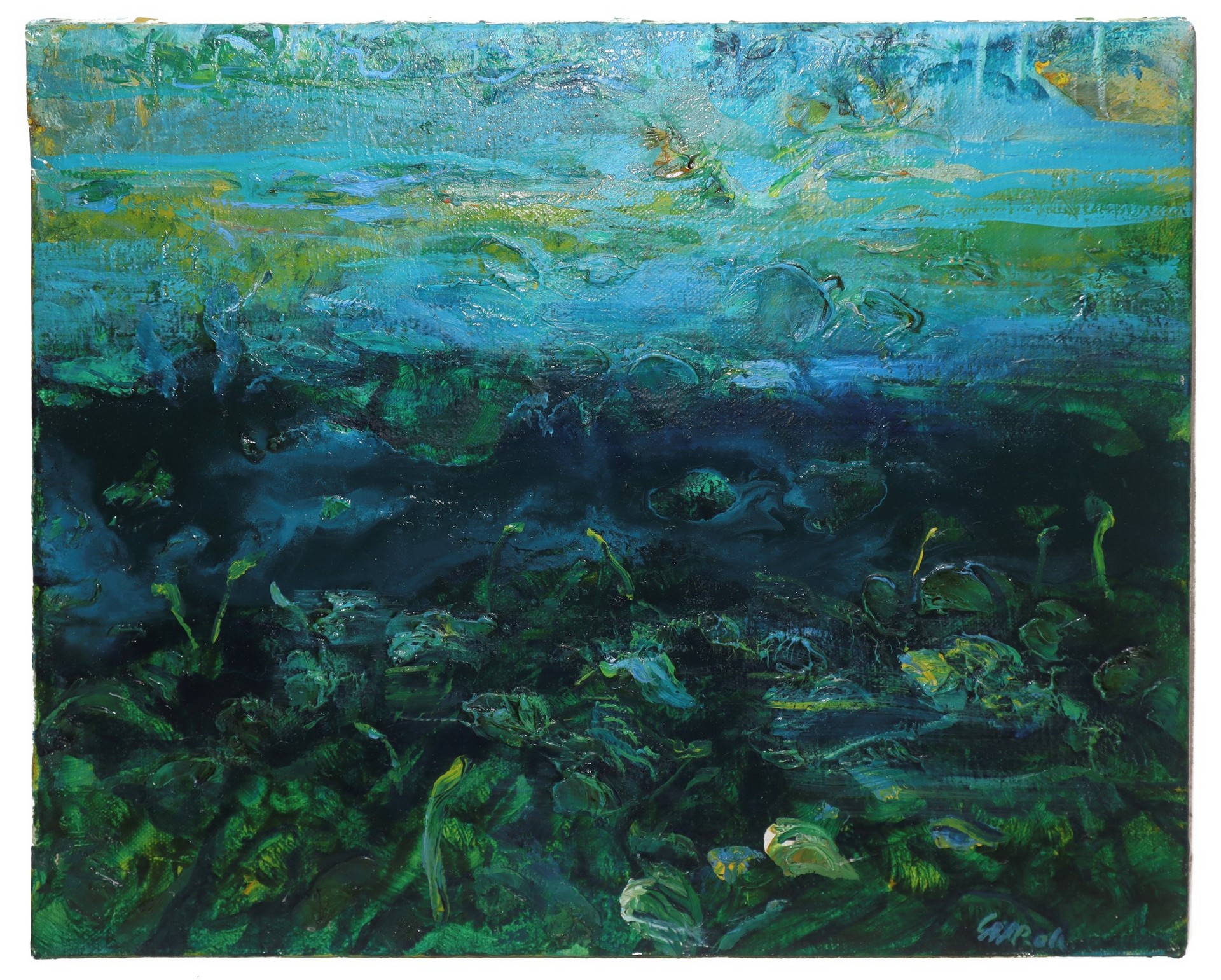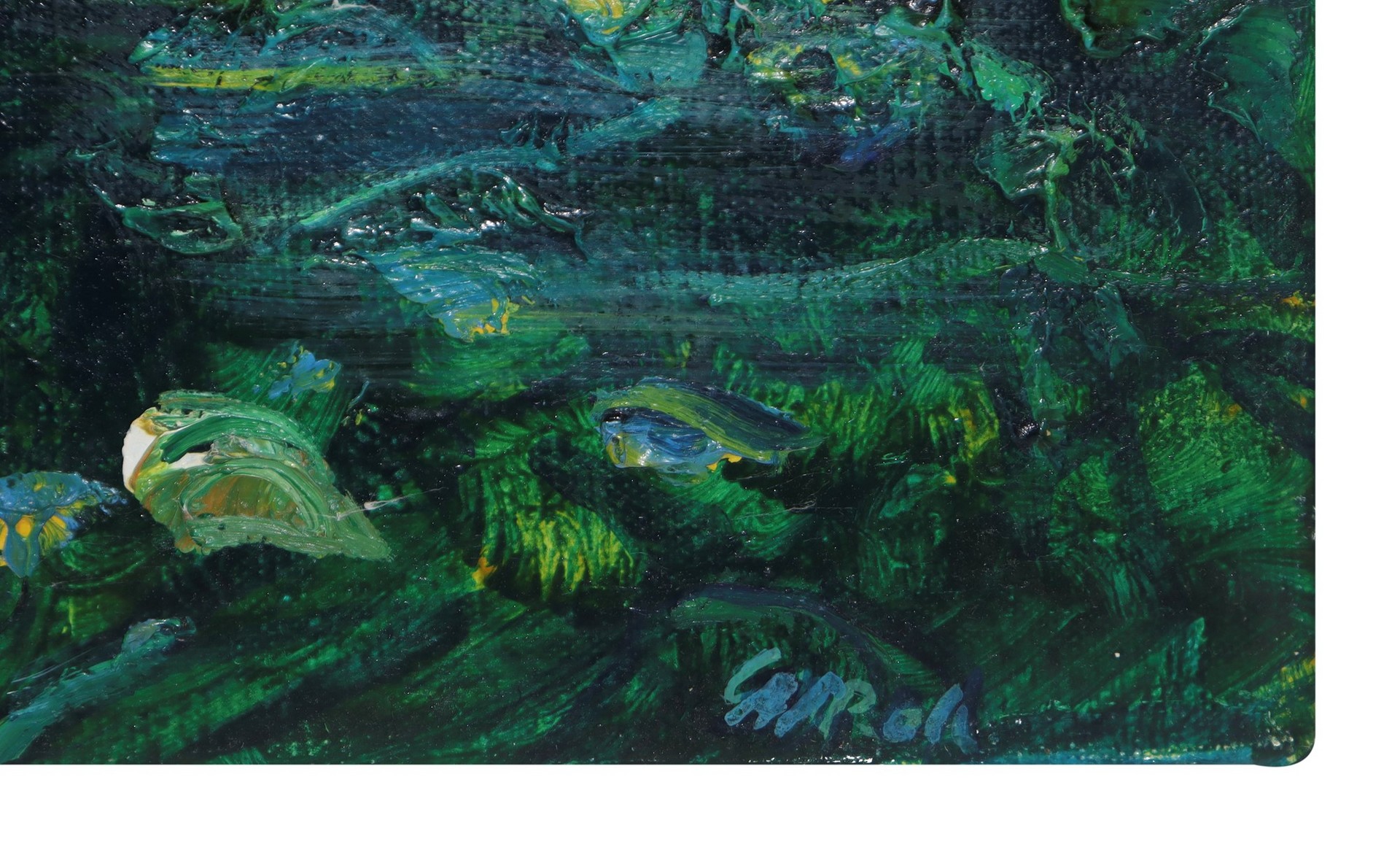 Robert Carroll (Ohio 1934) - Paesaggio lacustre cm 33 x cm 41 Olio su tela Firmato, datato ed archiviato al retro