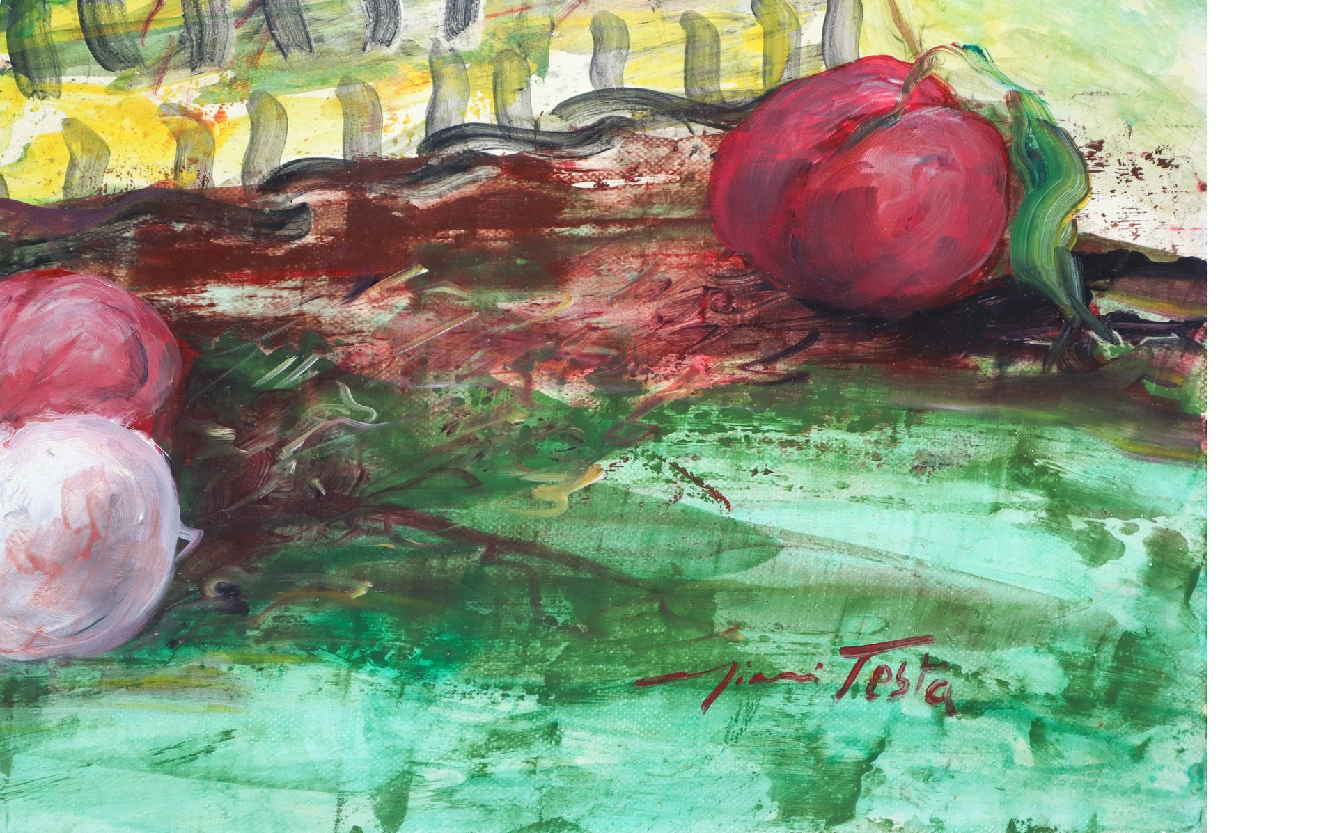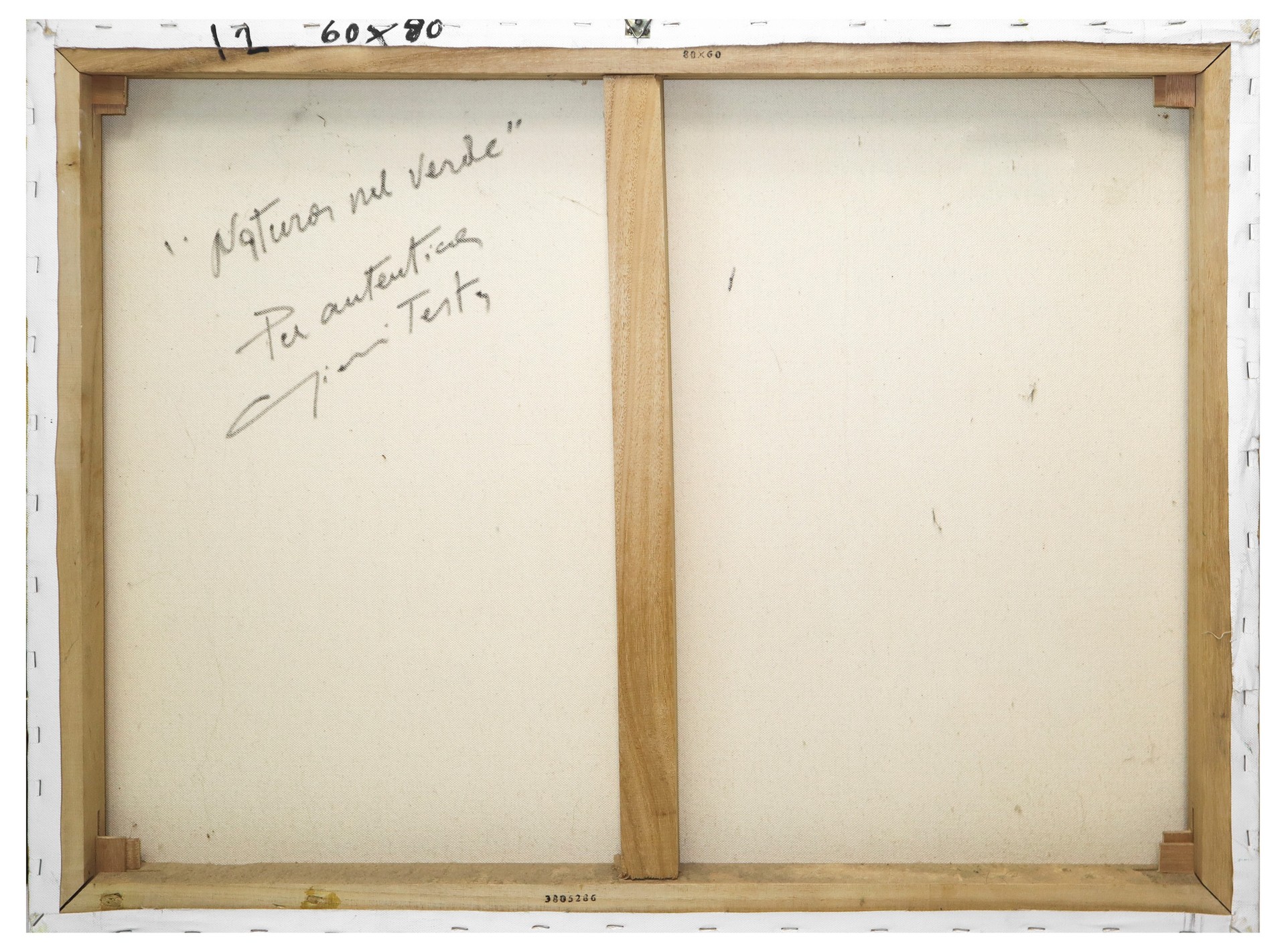 Gianni Testa (Roma 1936) - Natura nel verde cm 60x80 Olio su tela Firmato in basso a sinistra, firmato e titolato al retro. Autentica su fotografia. Opera pubblicata nel catalogo della mostra personale voltasi presso la Galleria Arena di Reggio Calabria