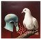 Antonio Sciacca (Catania 1957) - Colomba, elmo e corallo cm 100 x cm 100 olio su tela Firmato in basso a destra e sul retro. Opera sprovvista di cornice