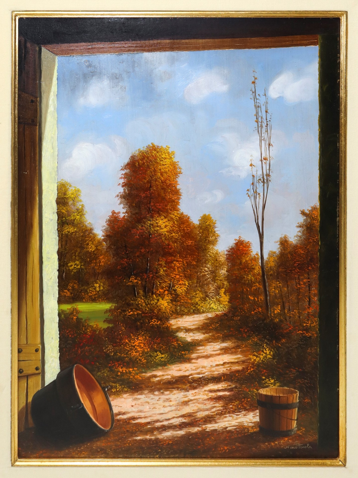 Nino Parola (1922-1999) - Bosco in autunno cm 70 x cm 50, in cornice cm 89 x cm 69 Olio su masonite Firmato in basso a destra