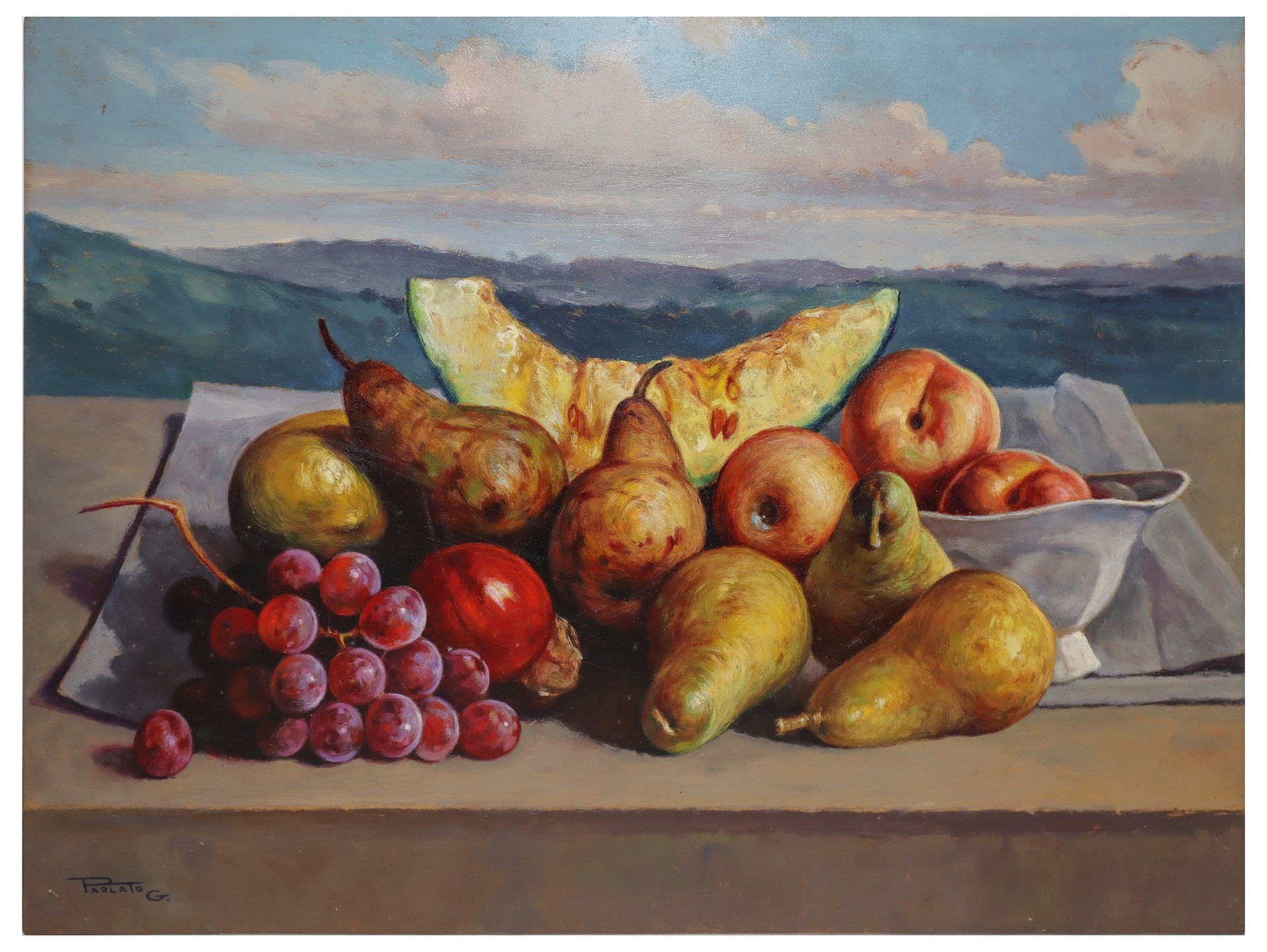 Giovanni Parlato (Vico Equense 1957) - Frutti Cm 52x70, opera sprovvista di cornice Olio su faesite Firmato in basso a sinistra
