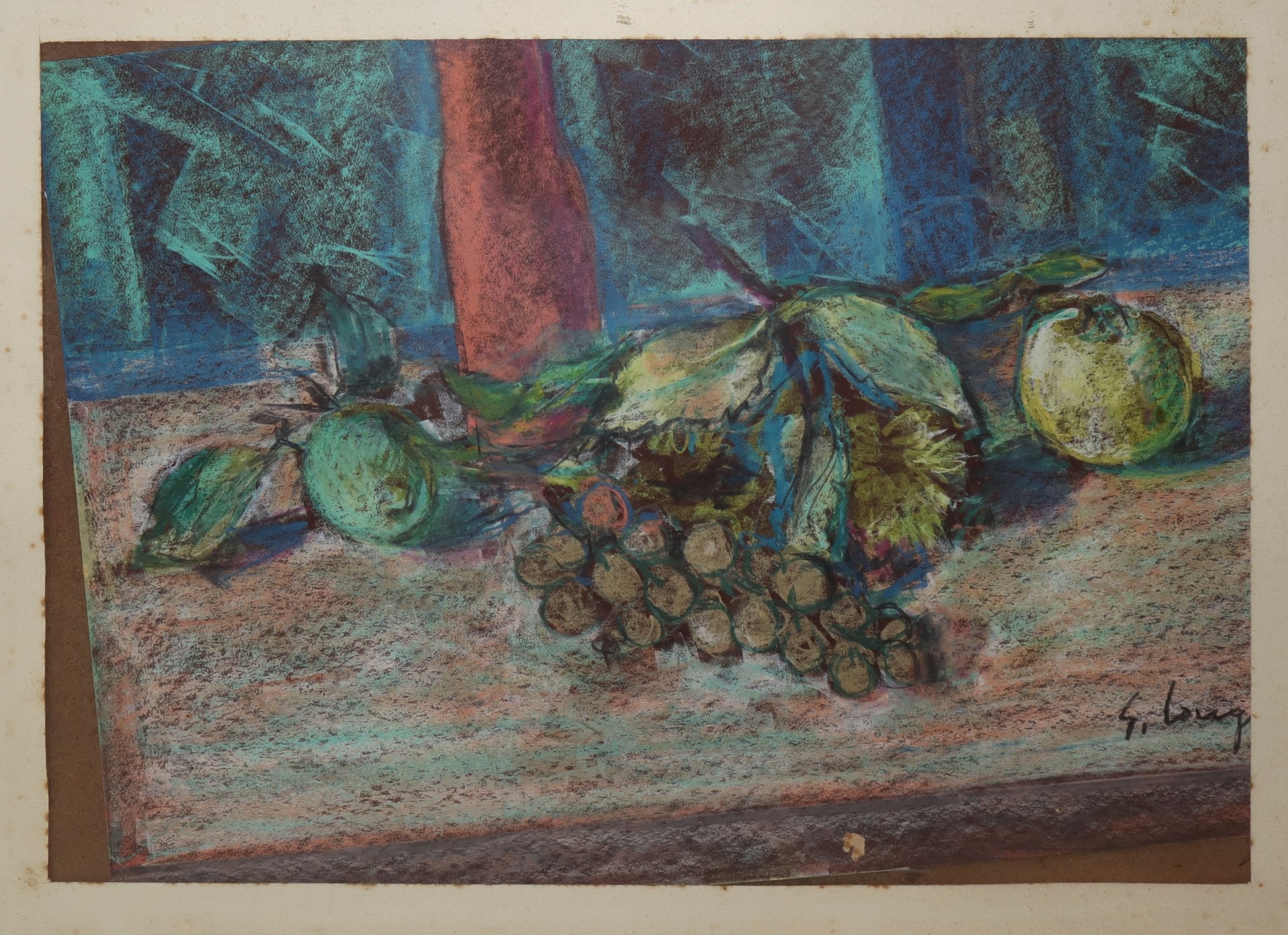 Gaetano Longo (Catania) - Natura morta di uva e limoni cm 45x65; in cornice cm 72x92 pastello su cartoncino Firmato in basso a destra e datato 82