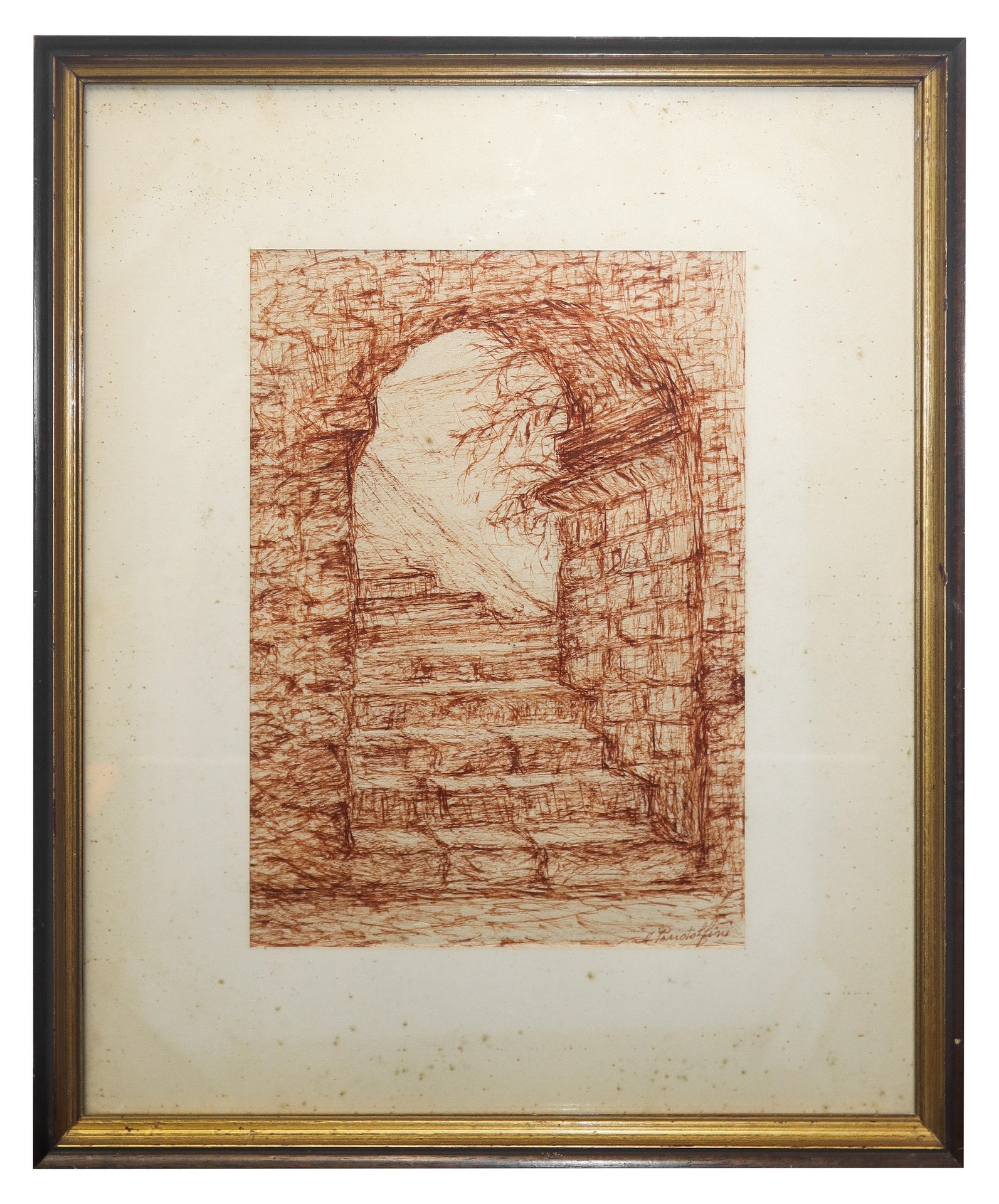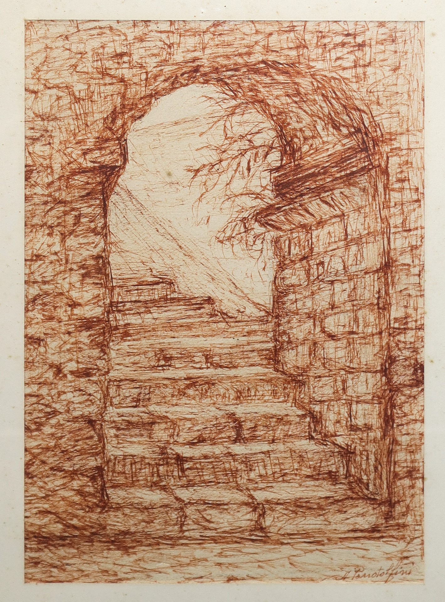 Anna Pandolfini - Arco con scale h cm 28 x cm 20, in cornice cm 45 x cm 37 Sanguigna su carta Firmato in basso a destra