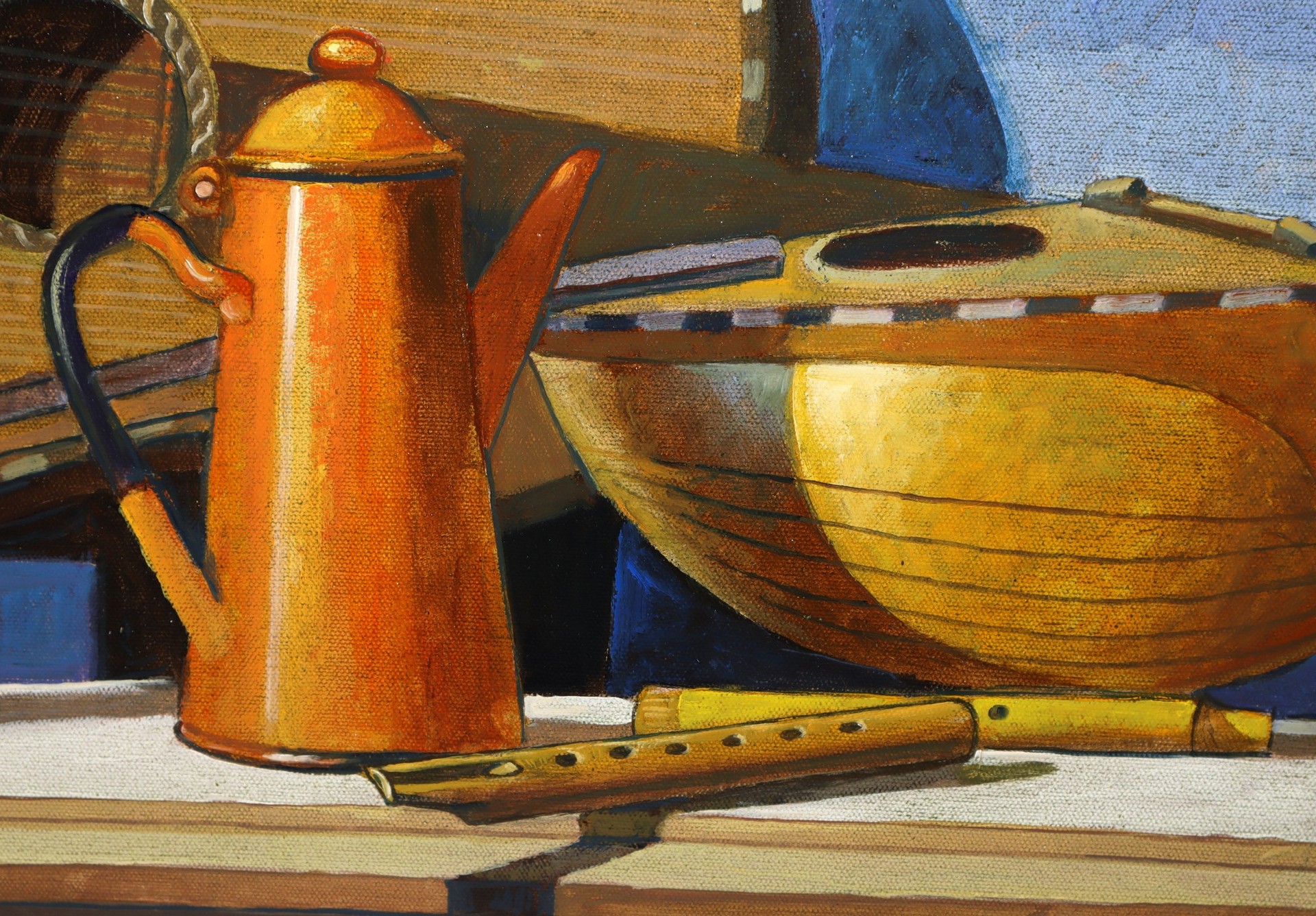 Saro Tricomi (Catania 1937-2021) - Strumenti musicali, 2019 cm 50X100 Dipinto ad olio su tela