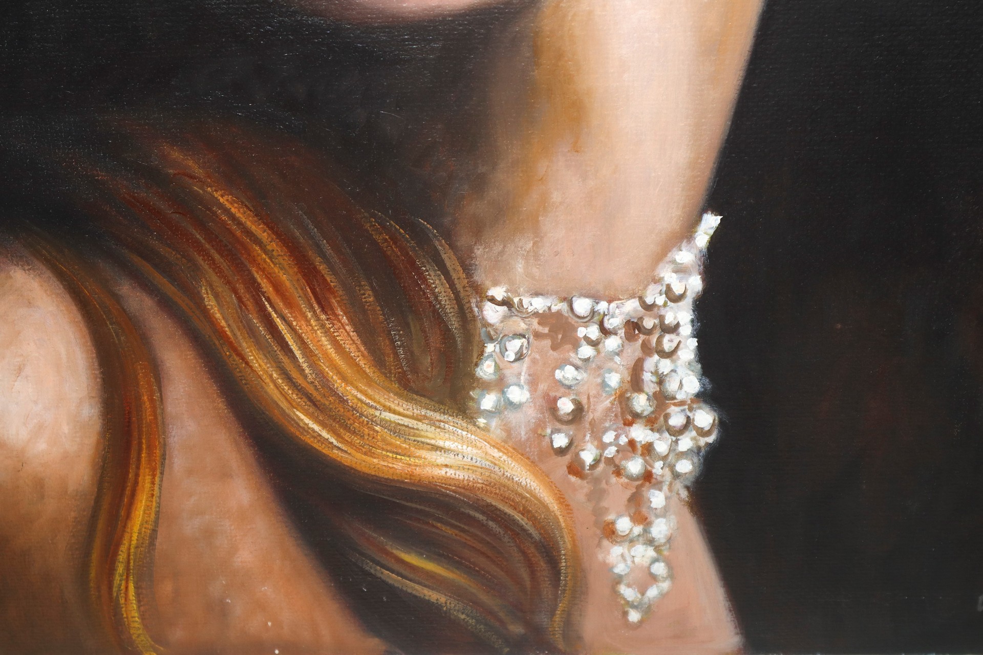 Antonio Sciacca (Catania 1957) - Viso di donna con collana cm 80 x cm 80 olio su tela Firmato in basso a destra e sul retro. Opera sprovvista di cornice. Presenti tracce di umidità