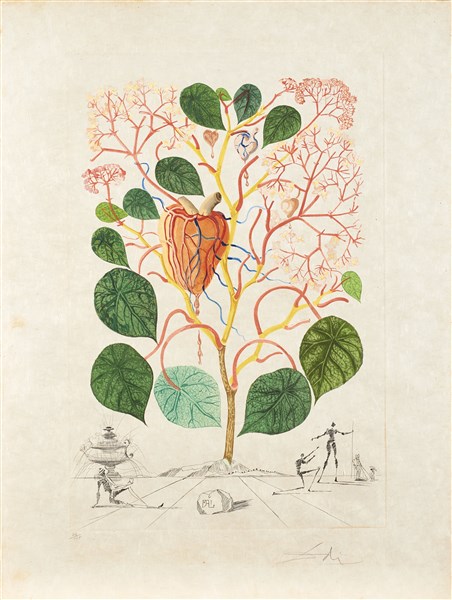 Salvador Dalì "Begonia (Anacardium recordans)" 1968 acquaforte acquatinta foglio