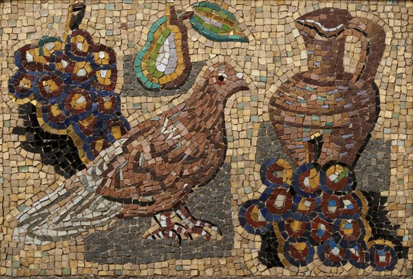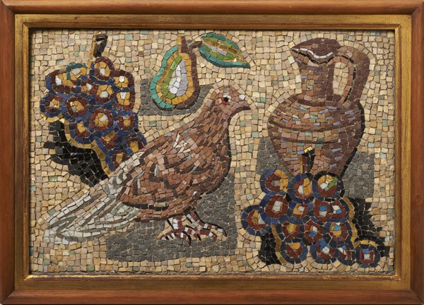 Gino Severini "Piccione, brocca e grappoli d'uva" 1938 circa mosaico cm 31x44,5