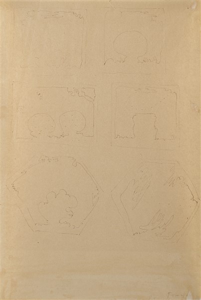 Lucio Fontana "Studi per Concetto spaziale, Teatrino" penna a sfera blu su cart