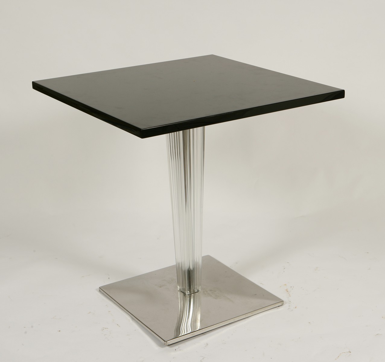 STARK PHILIPPE. Taolino top bar per Kartell. "Top" bar side table for Kartell Acciaio, plastica nera e trasparente. Cm 70x74x70. Tavolino in acciaio, plastica nera e trasparente. Iron, Black and clear Hard plastic. 1975.