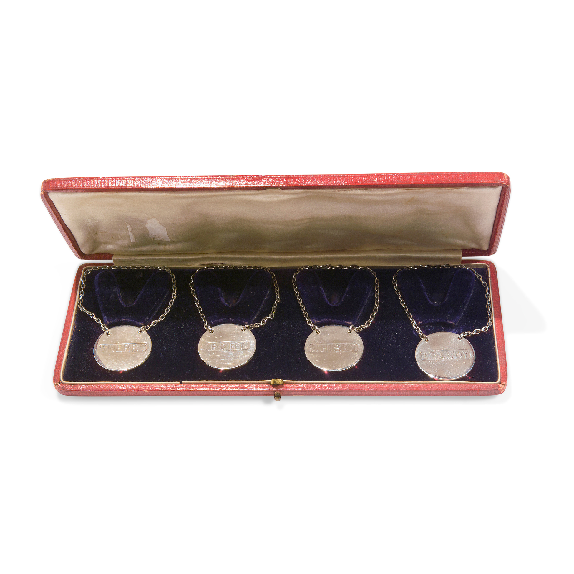 Lotto 3 | Quattro targhette in argento per bottiglie di liquore, Chester prima metà del XX secolo