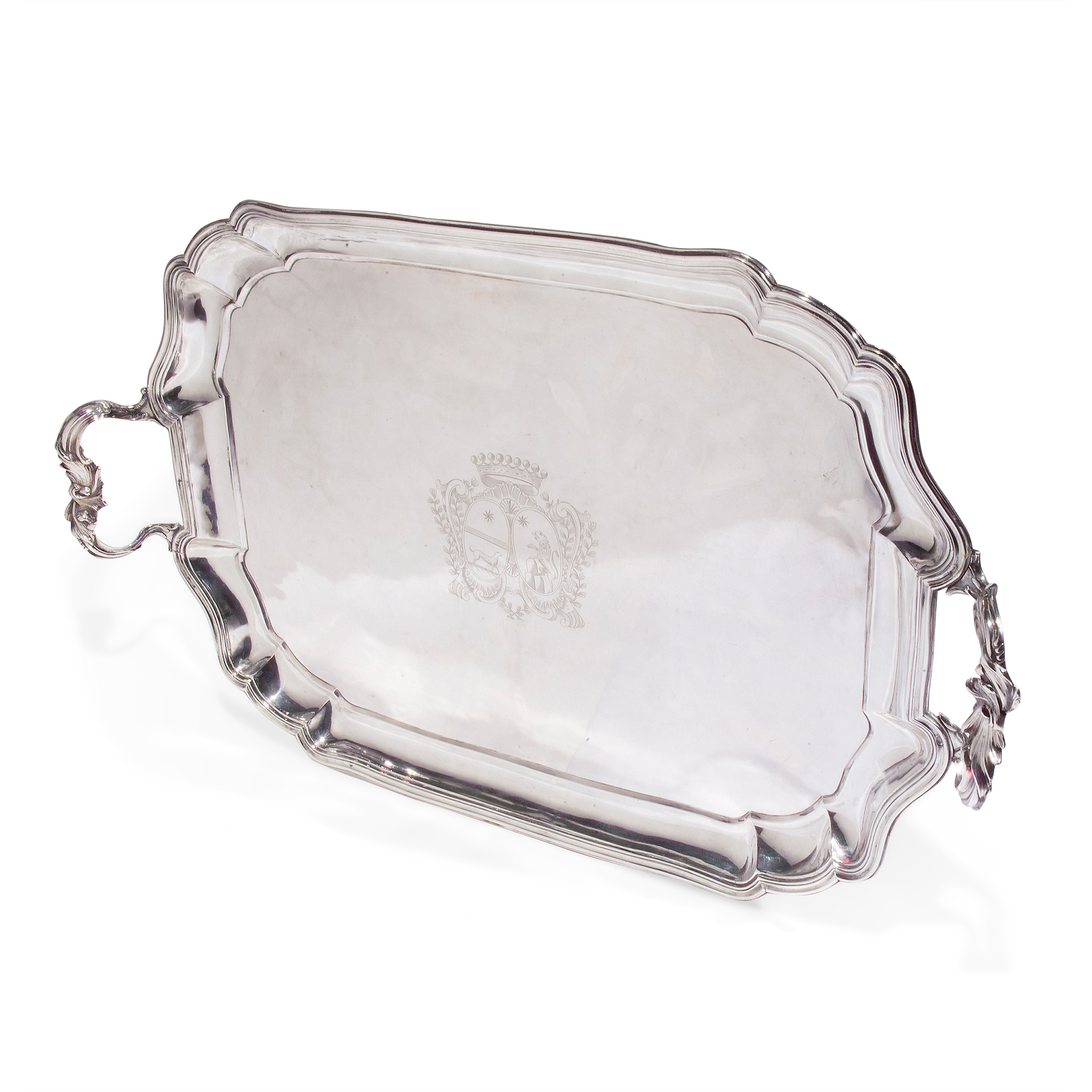 Manufatto dal maestro argentiere Antonio II fumanti (1754-1804). Peso complessivo 2235 gr., dimensioni complessive 8x66x40 cm.