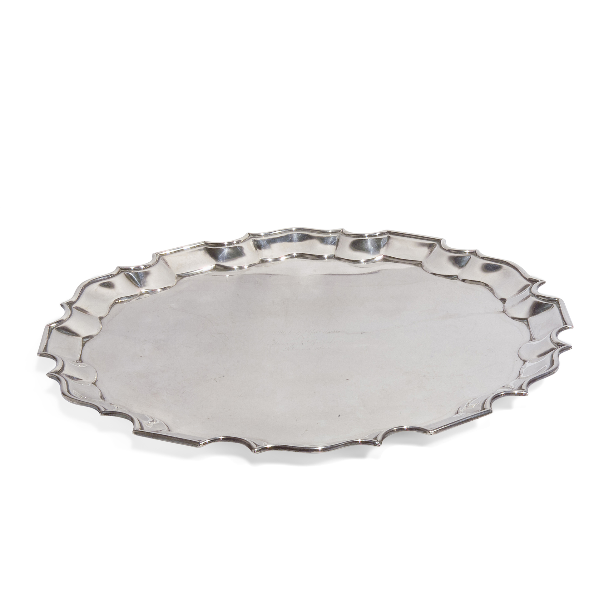 Reca al centro l'iscizione incisa 'Pat & Gordon from Mary & Gordon Xmas 1944'. Peso complessivo 1400 gr., dimensioni complessive 1.5x39x39 cm.