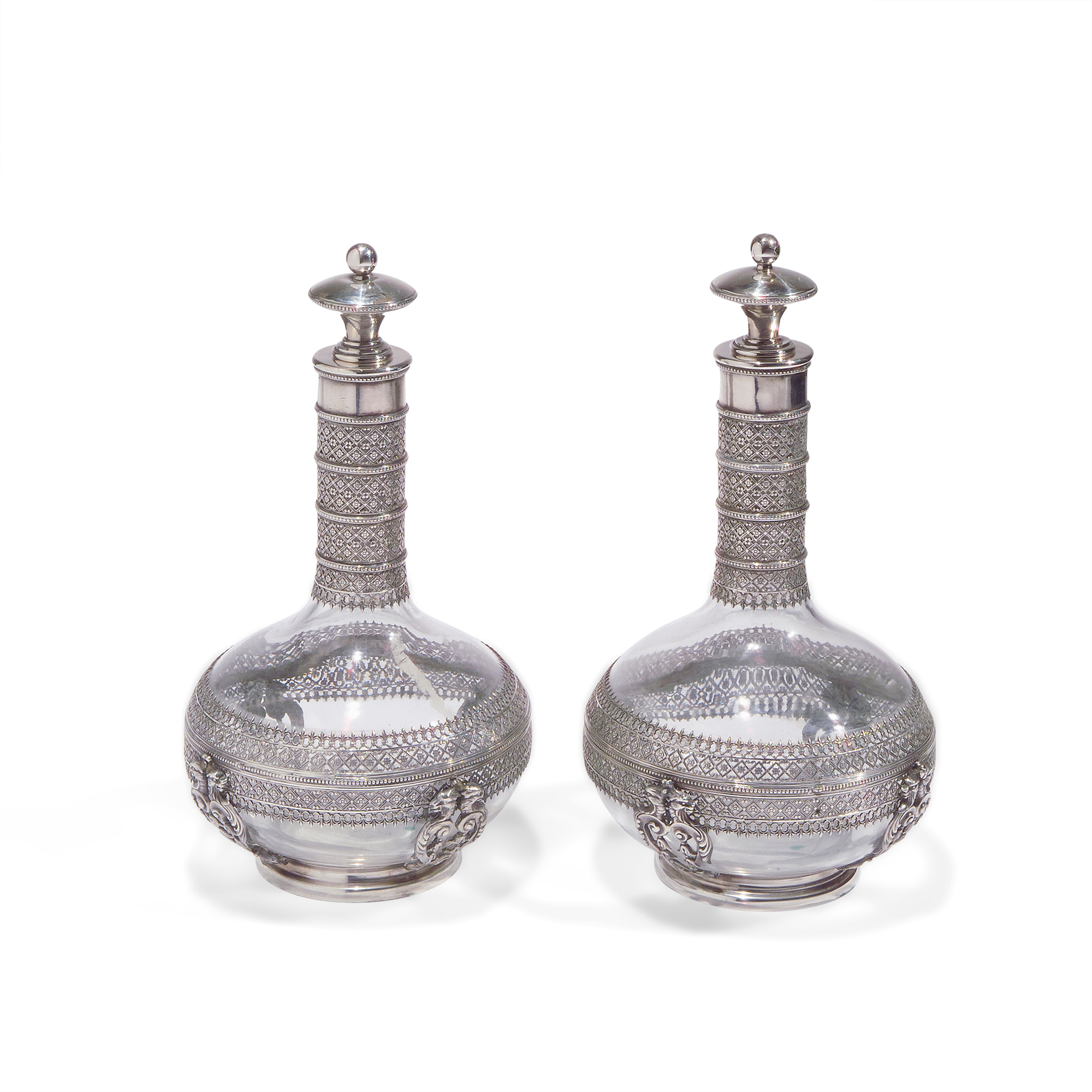 Coppia di bottiglie in cristallo e argento, Francia seconda metà del XIX secolo