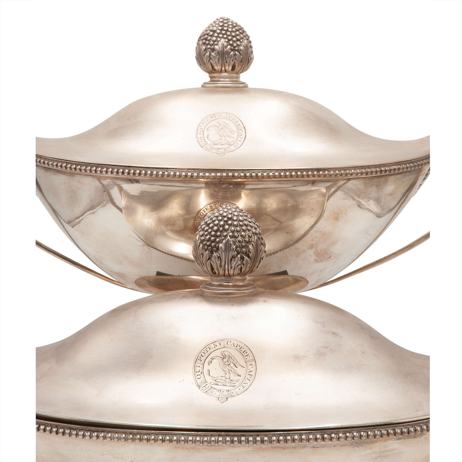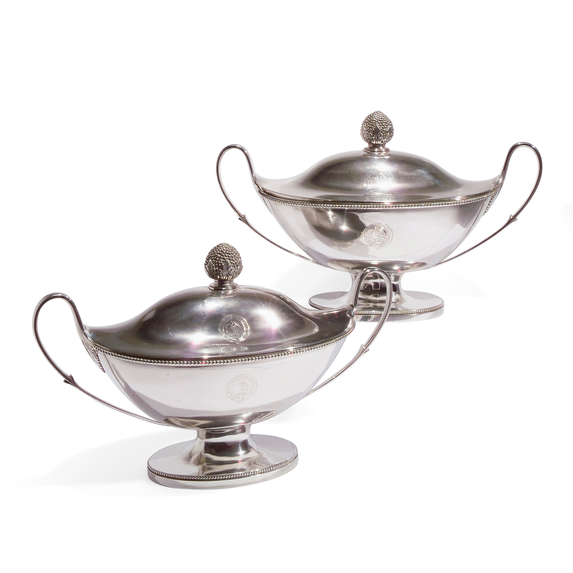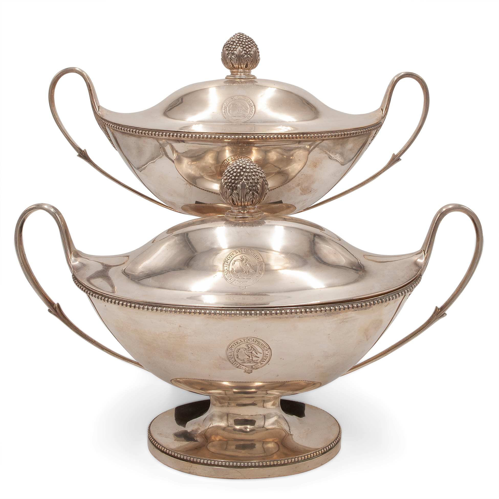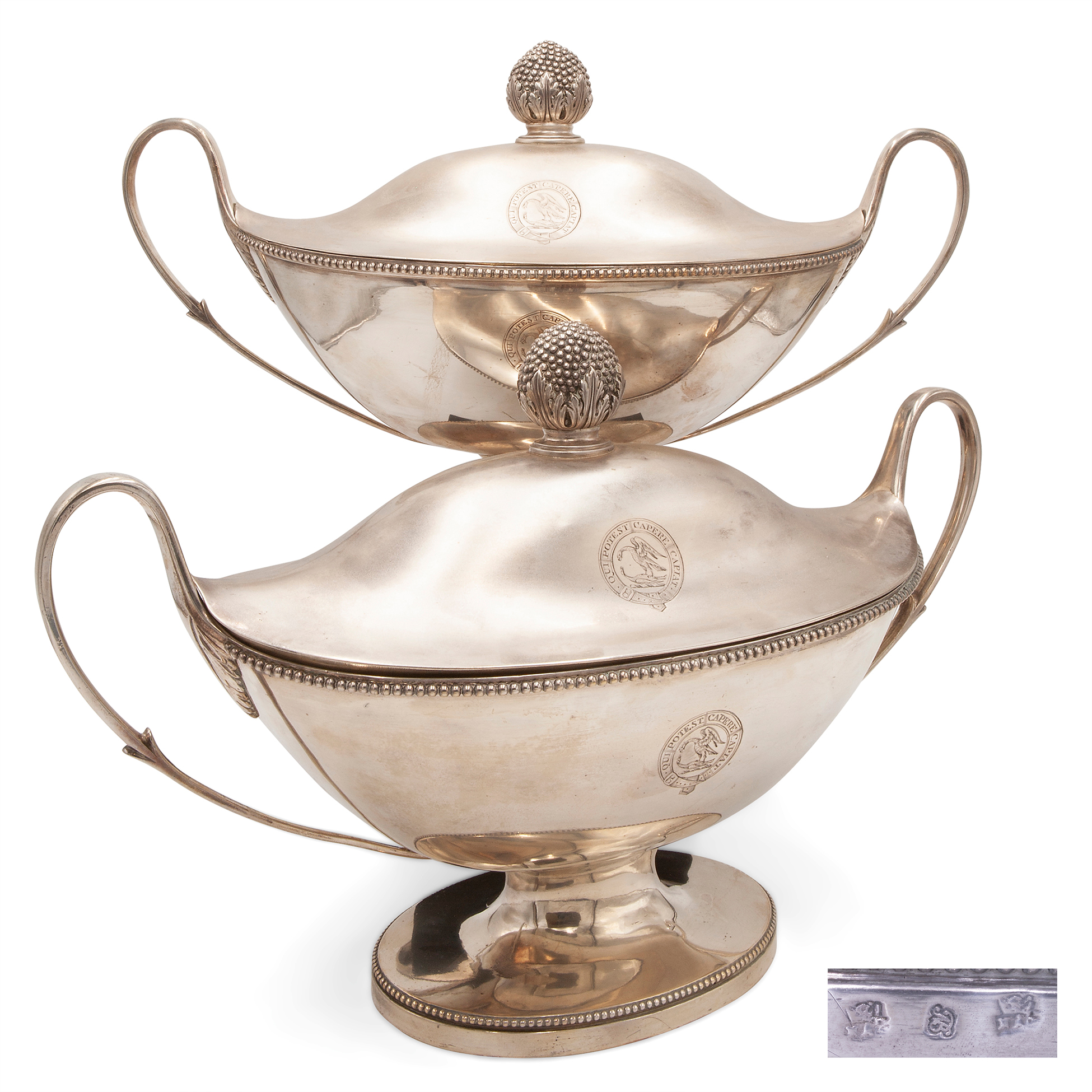 Coppia di zuppiere ovali in argento, Napoli 1804