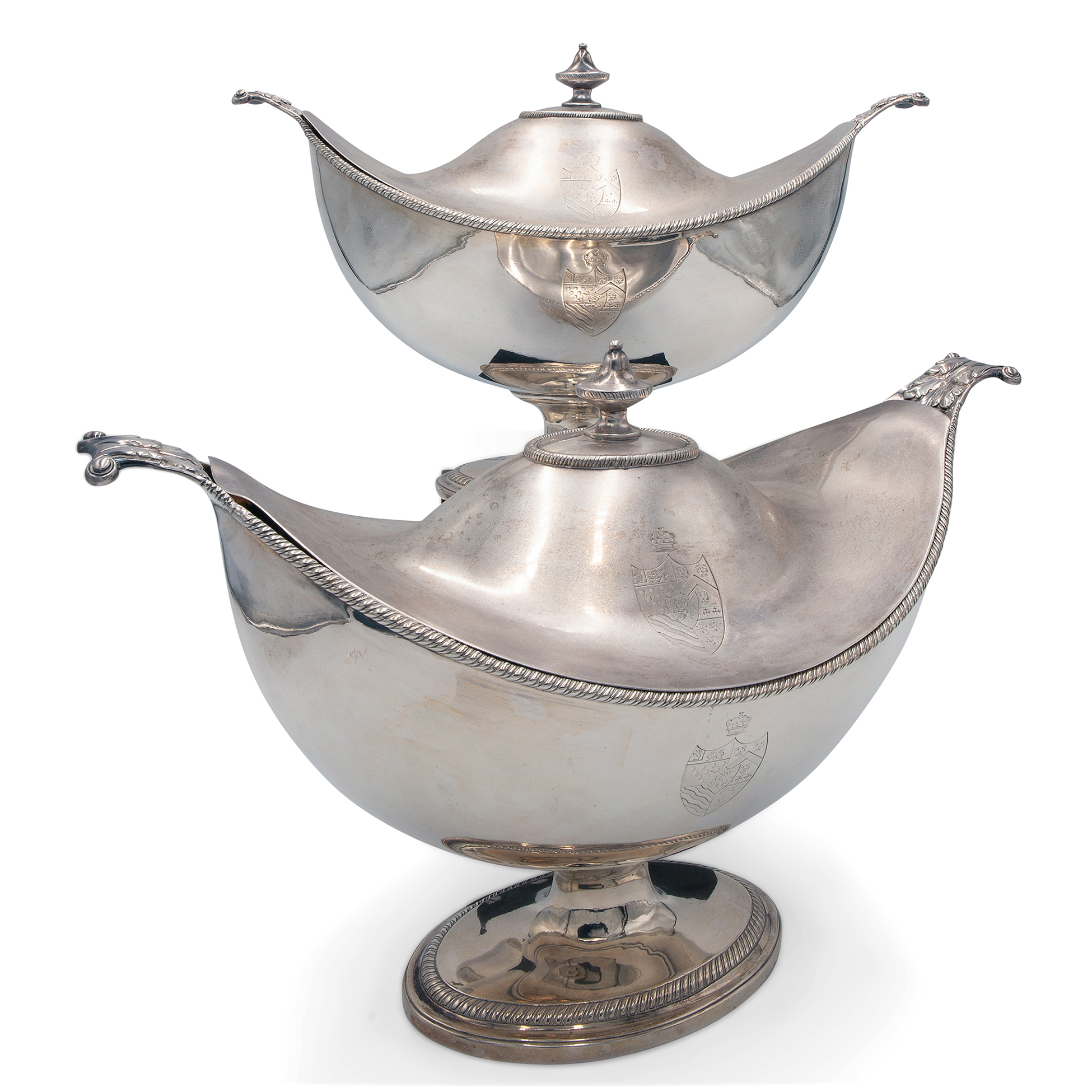 Marchio del maestro argentiere E. Fennell; peso complessivo 3557 gr., dimensioni complessive 27x37.5x19.5 cm. cad.