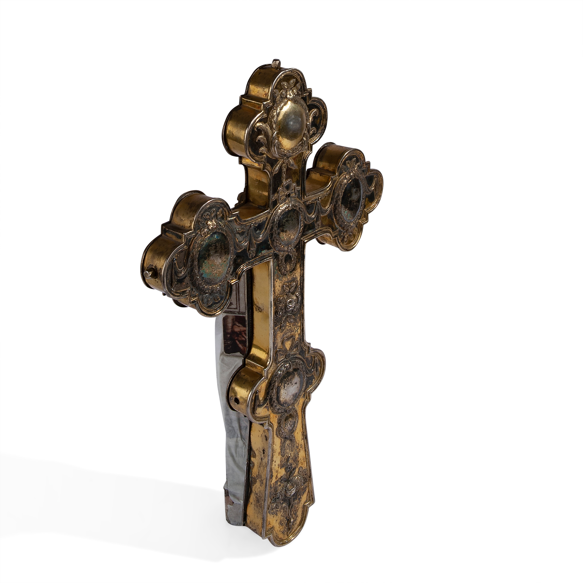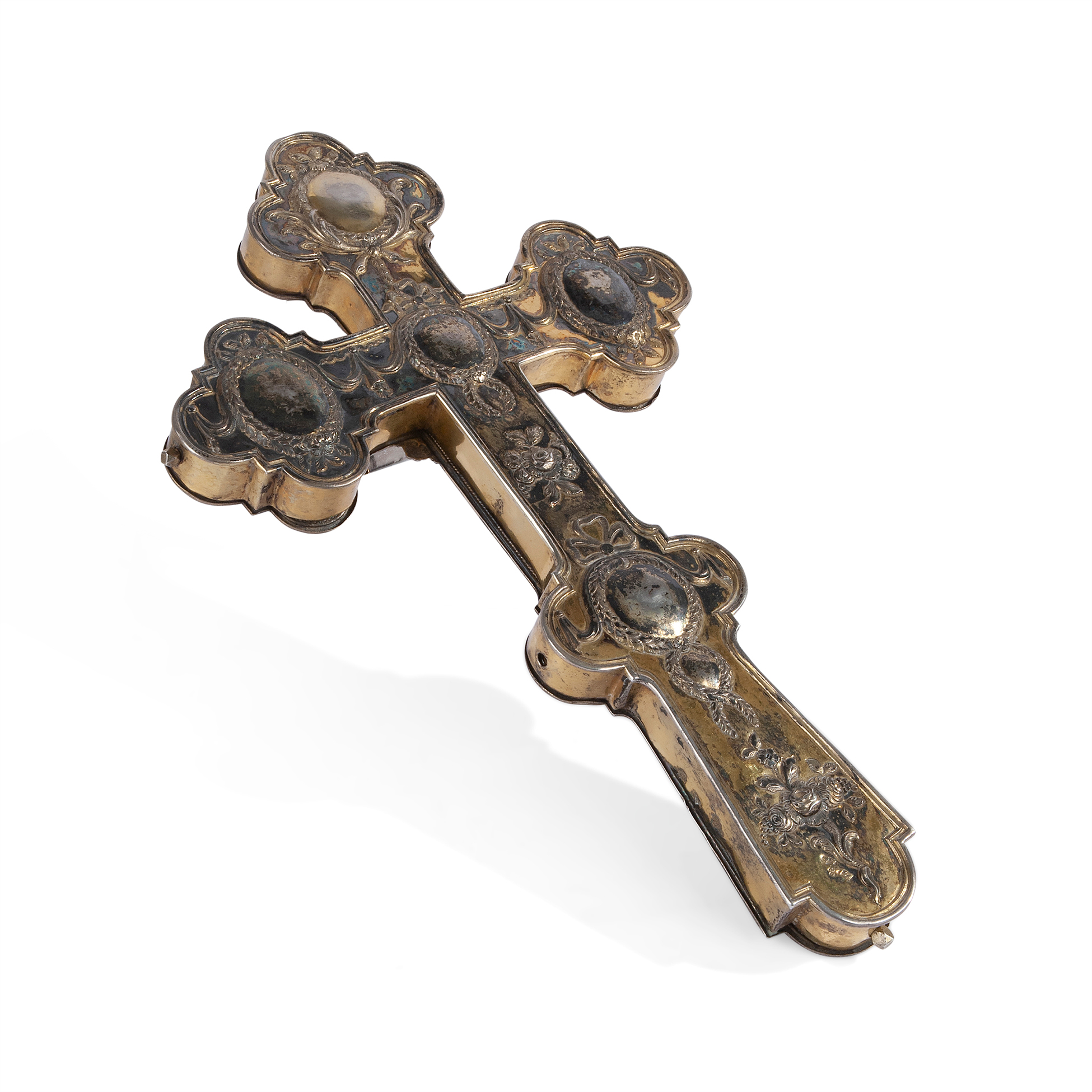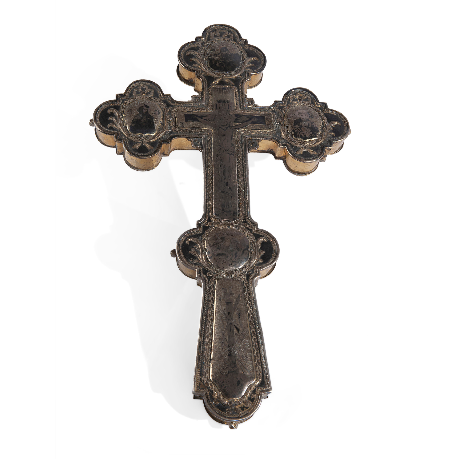 Realizzata per la liturgia ortodossa, con decorazioni a niello; peso complessivo 792 gr., dimensioni complessive 43x27x2.5 cm.