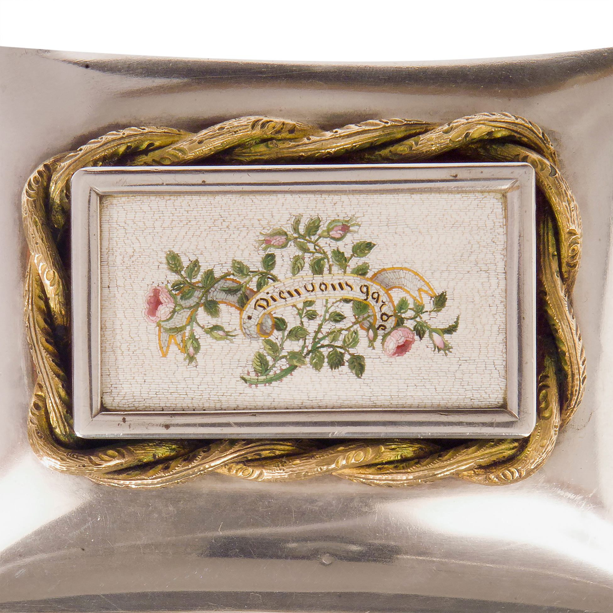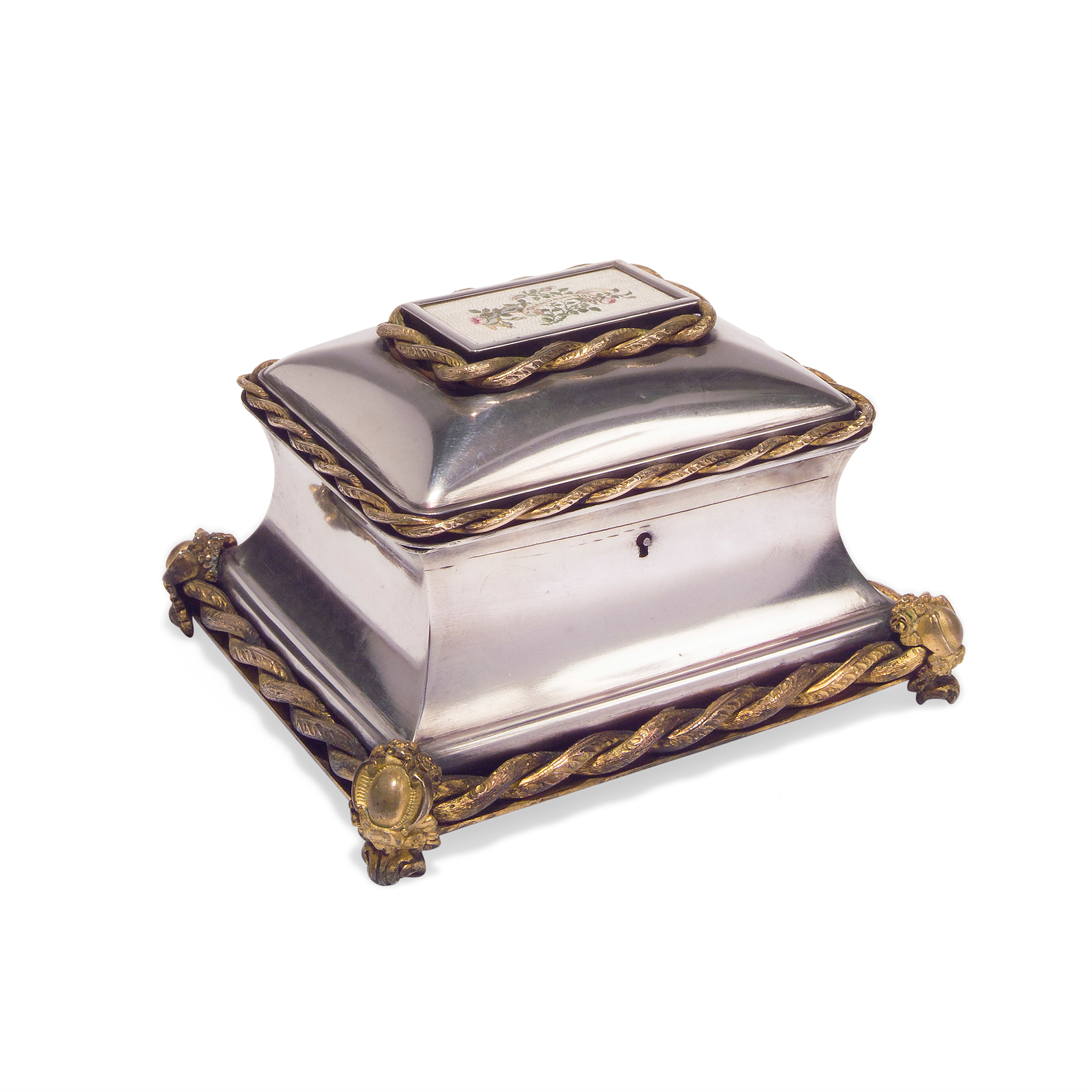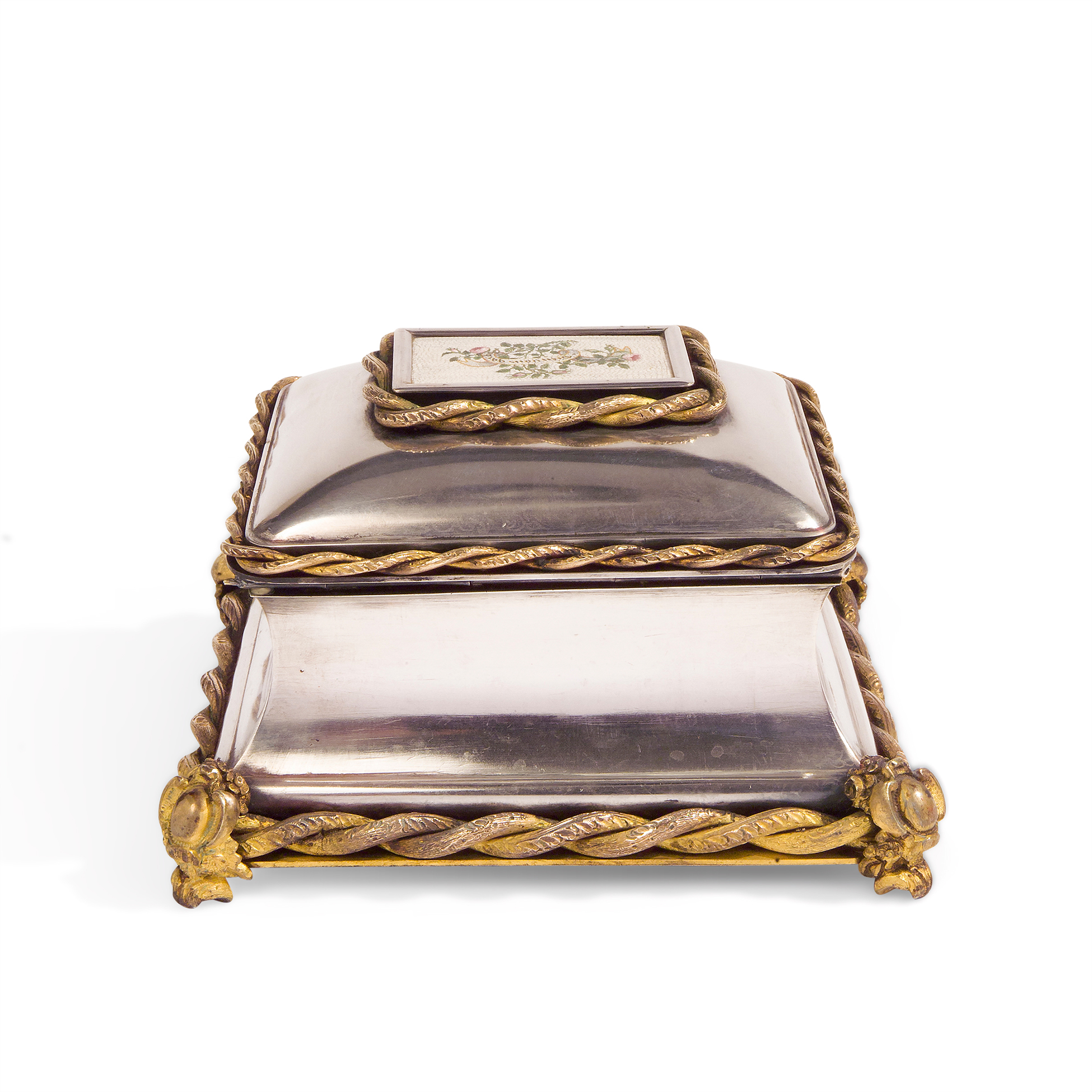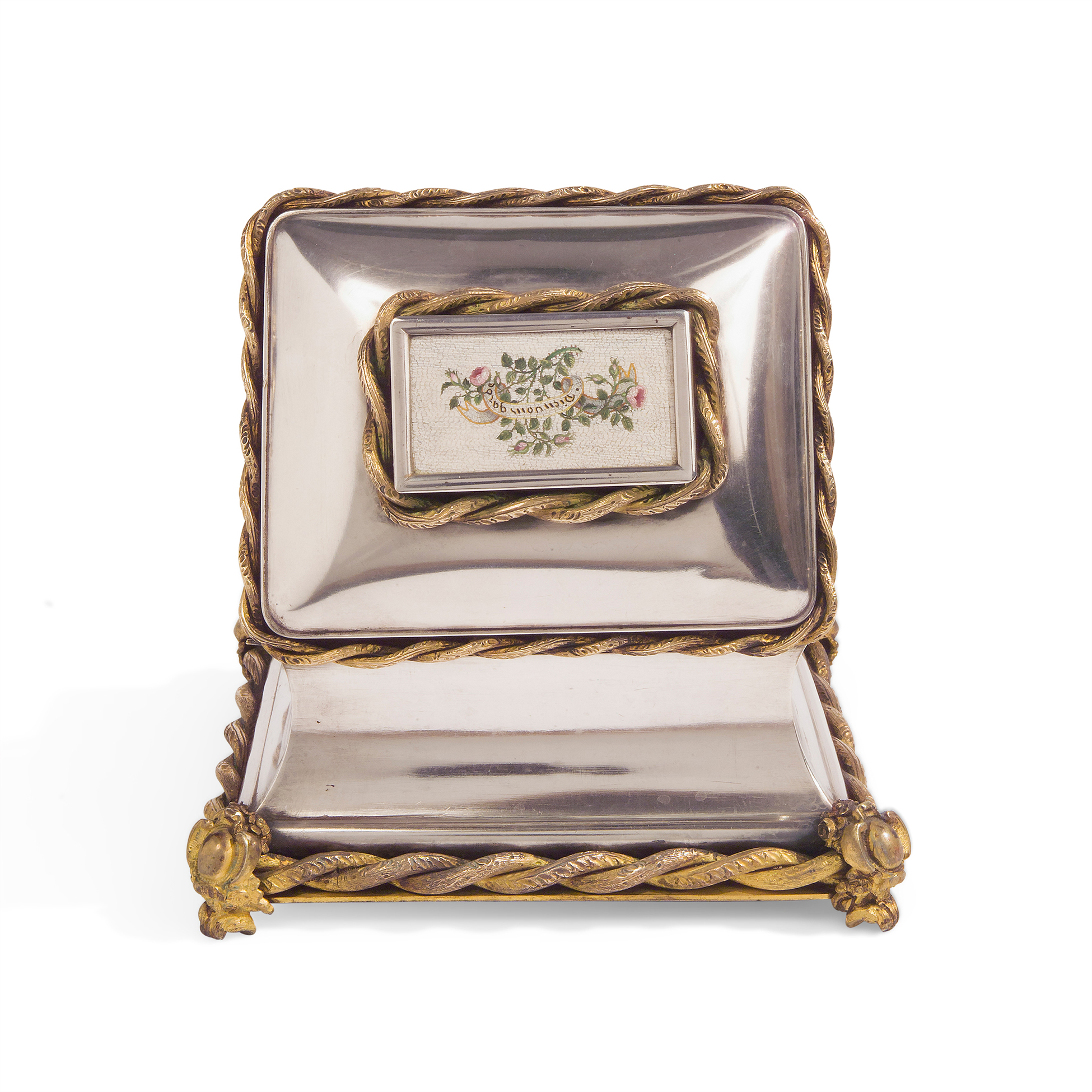 Cofanetto in metallo argentato e micromosaico, Italia XIX secolo