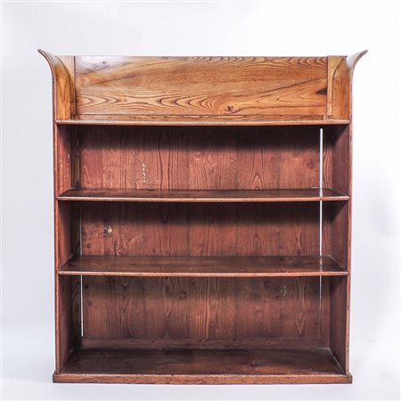 LIBRERIA BASSA A GIORNO IN ROVERE prima metà del XX secolo fianchi con finali svasati, quattro scaffali a giorno h cm 132x130x26