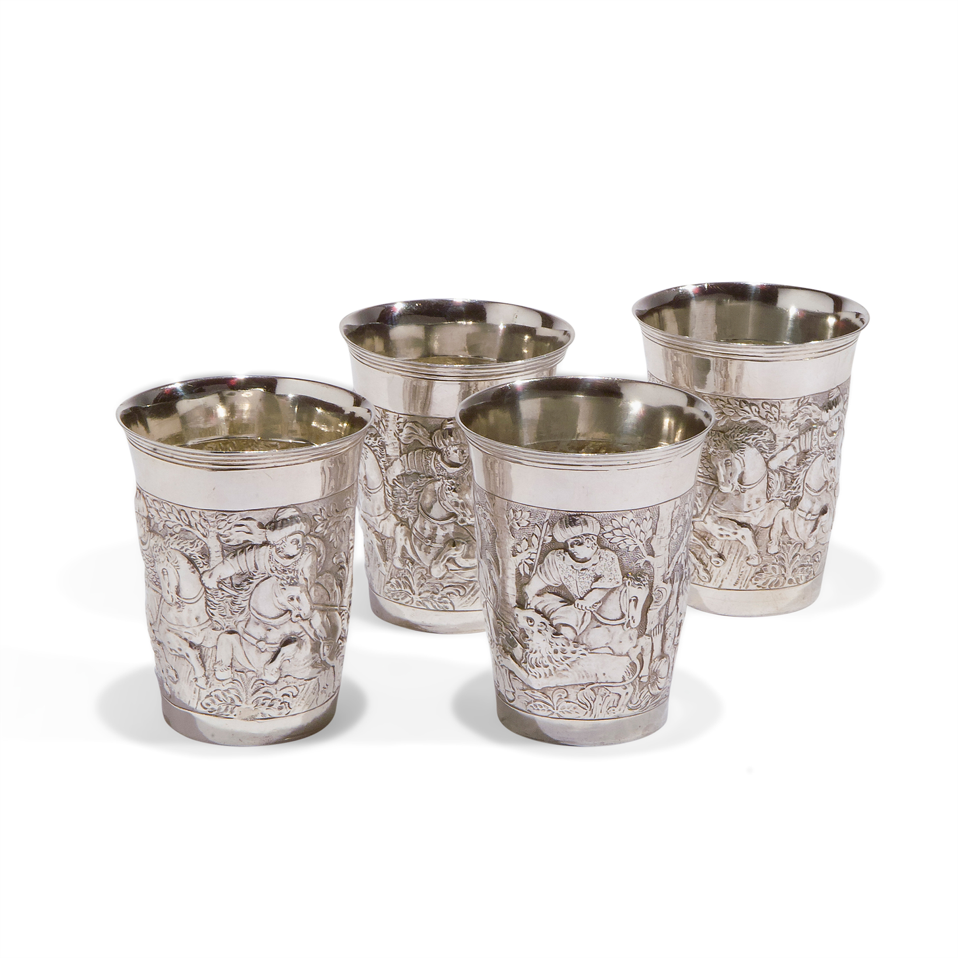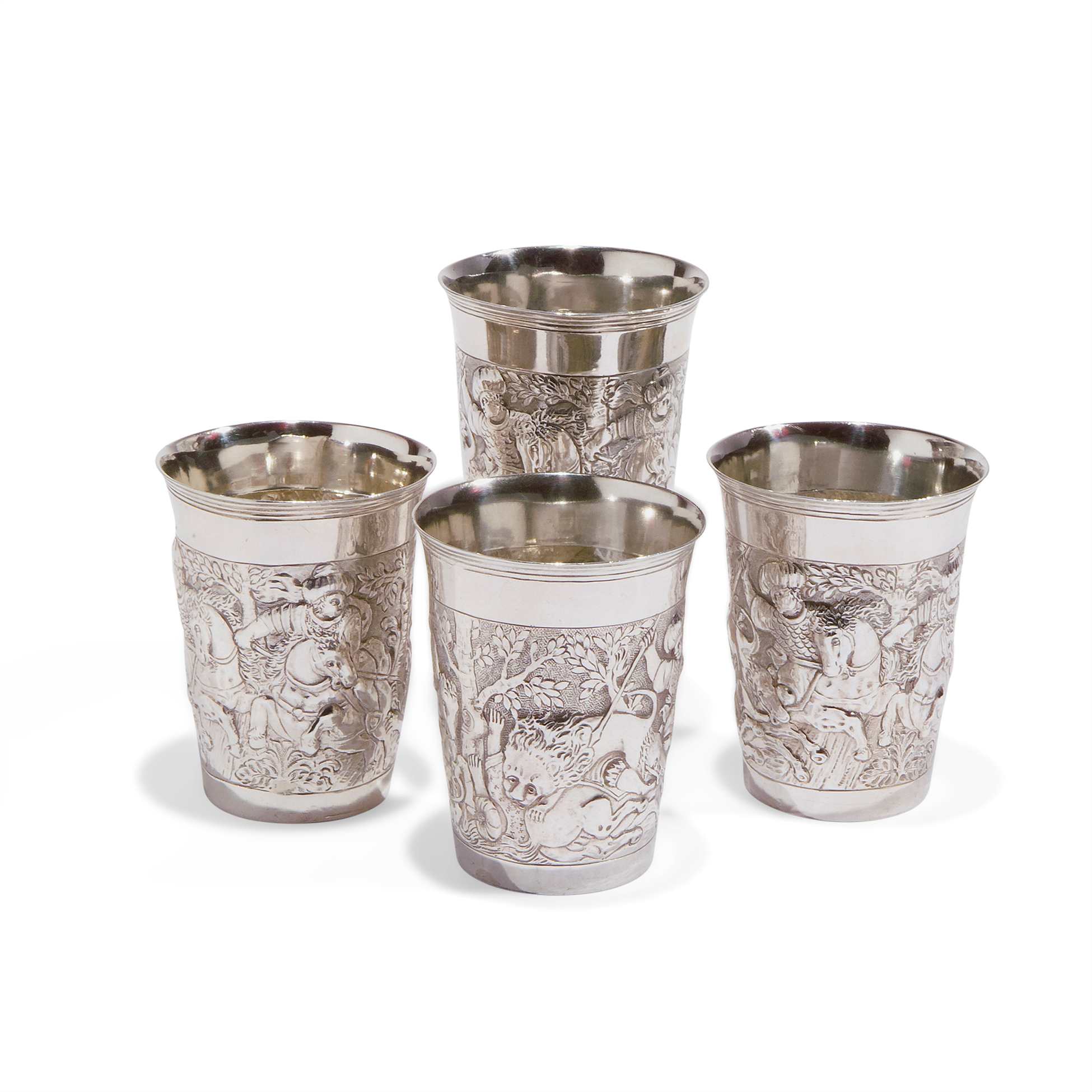 Quattro bicchieri in argento sbalzato, Germania XIX secolo