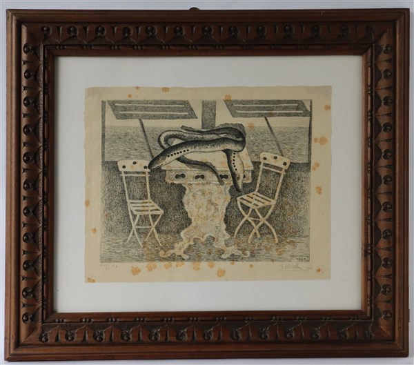 Giuseppe Viviani "Le lamprede" 1941 acquaforte (lastra cm 26x32,5; foglio cm 31x