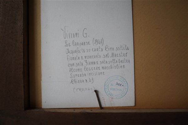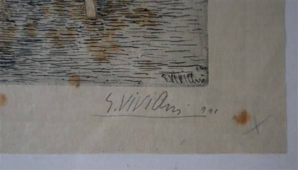 Firmata, datata e numerata VIII/30, firmata e datata in lastra in basso a destra. In cornice (gravi difetti)