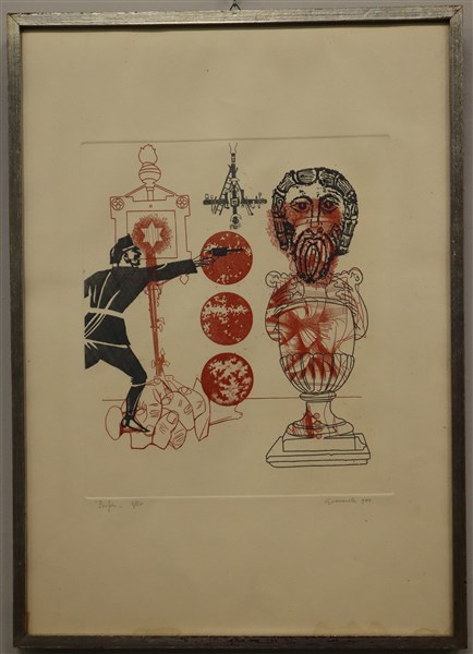 Lotto 742 | Giuseppe Guerreschi "Profeta" 1969 acquaforte a colori (lastra cm 39x34; foglio