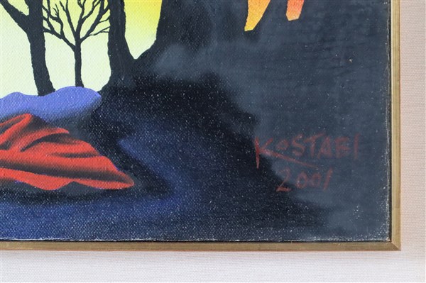 Kostabi Mark "Dark Stars" 2001 acrilico su tela cm 45x60 firmato e datato in bas