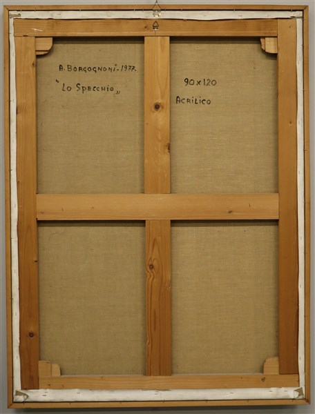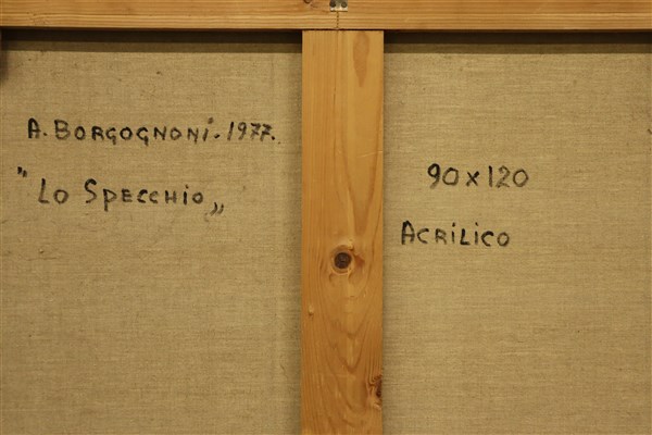 Lotto 836 | Adolfo Borgognoni "Lo specchio" 1977 acrilico su tela cm 120x90 firmato e datato