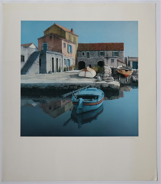 Mihanovic Zvonimr "Fishing Village" 1986 litografia a colori cm 75x65 Firmata e