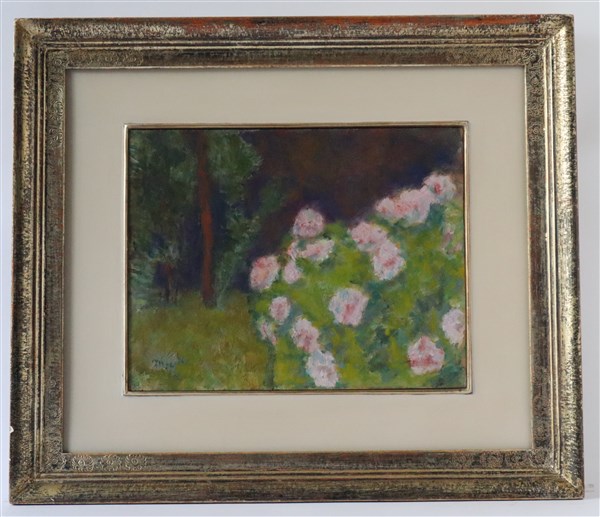 Enzo Morelli "Giardino" 1965 olio su tavola cm 22x28 firmato in basso a sinistra