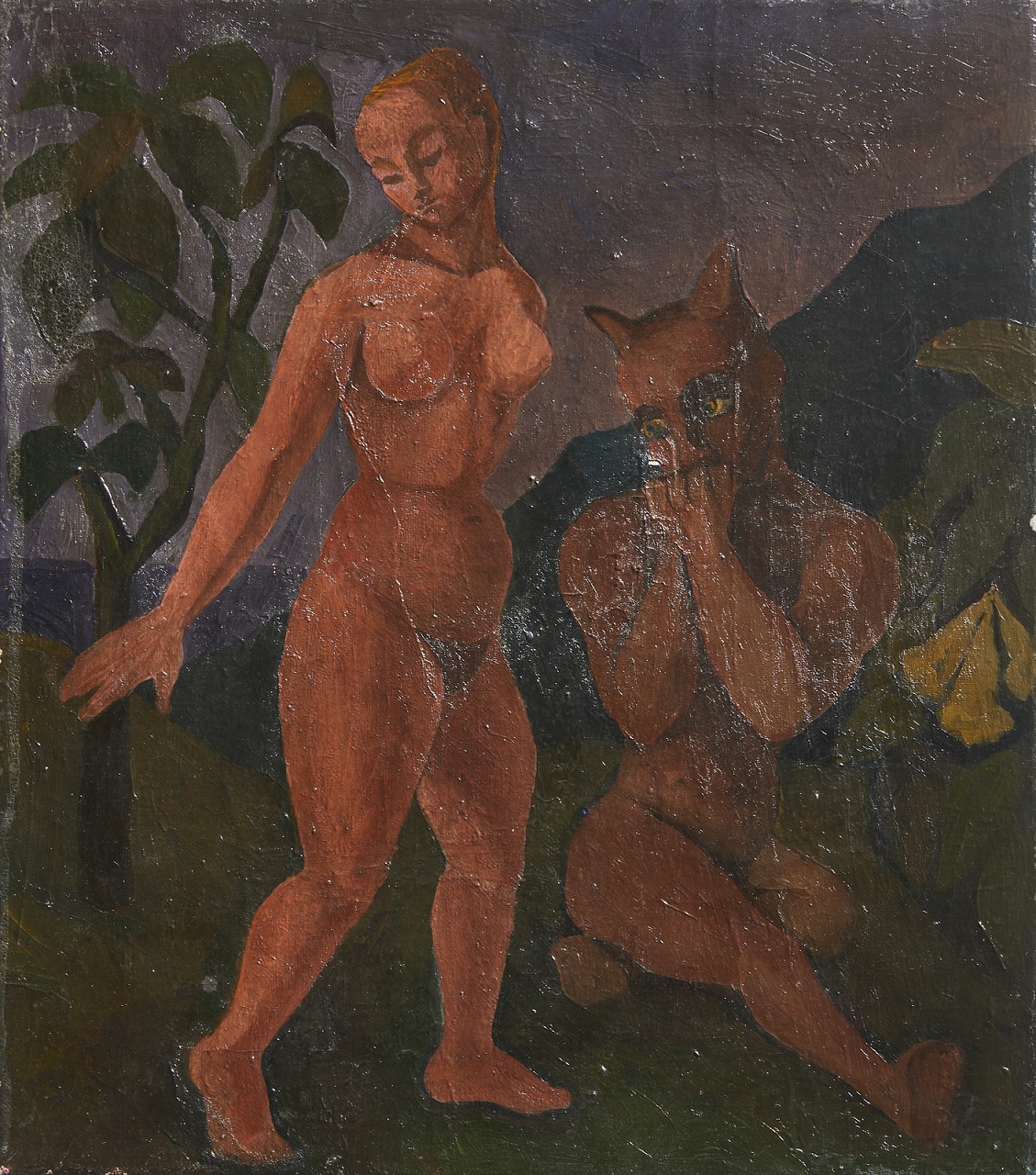 DESSY ANTONIO (n. 1913) Ninfa e Satiro. Olio su tela . Cm 35,00 x 40,00. Esposizioni: Galleria Gussoni, Milano, 10 - 19 ottobre 1951.