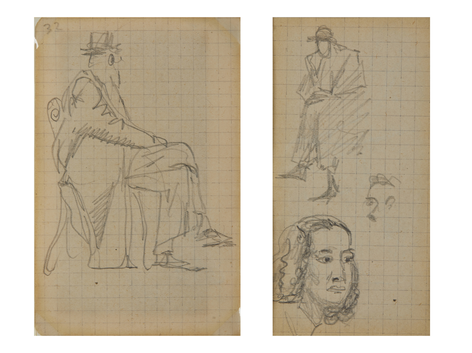 DE CHIRICO GIORGIO (1888 - 1978) Taccuino. Disegno. Cm 6,60 x 10,30. Doppio disegno. Doppia archiviazione rilasciata dalla Fondazione Giorgio e Isa De Chirico, Roma (12 Marzo 1994) come da documentazione fotografica allegata all'opera. Certificato di garanzia Picma Arte, Verona. i 27 disegni sono catalogati presso la Fondazione Giorgio De Chirico separatamente, ciascuno con dichiarazione scritta su fotografia recante il progressivo numero d'archivio. Pubblicazione: Giorgio De Chirico, 27 disegni originali dal classicismo al metafisico, Picma Arte, Verona. 1924-1929. Cornice presente