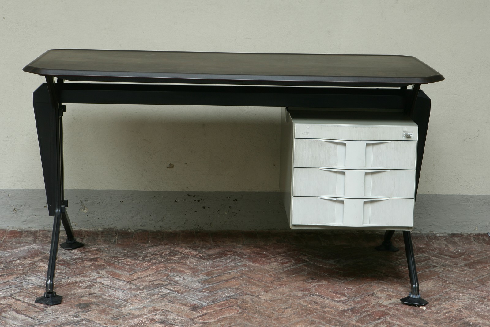 BELGIOSO PERESSUTTI ROGER ( GRUPPO BBPR). Scrivania Olivetti serie Arco,struttura in metallo laccato,piano in materiale plastico. Olivetti desk Arco,lacquered metal frame,surface in plastic materials. Metallo cromato. Cm 140x77x70. 1963.