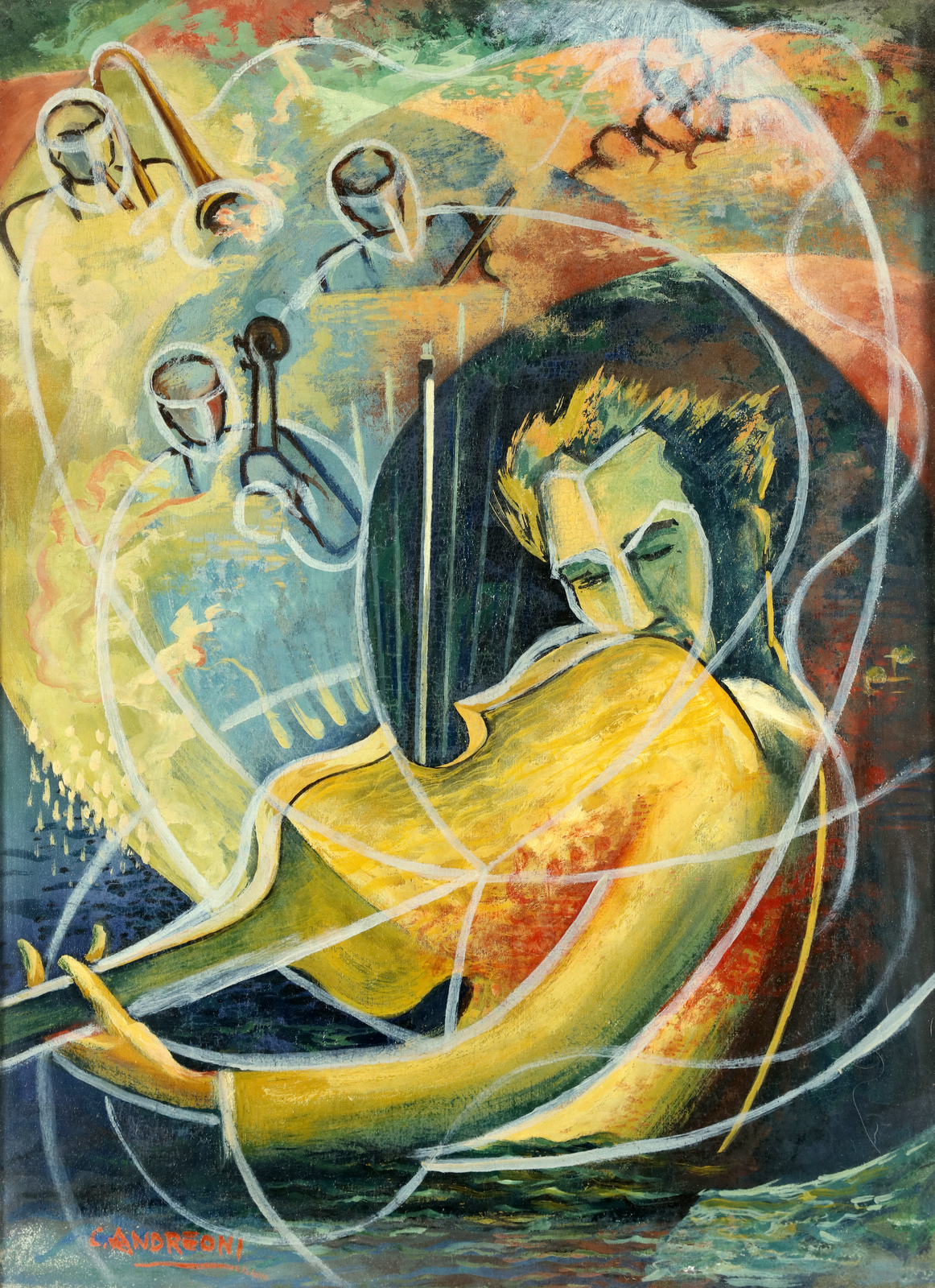 ANDREONI CESARE (1903 - 1961) Violinista. Olio su tela . Cm 50,00 x 70,00. Anni '30. Firma in basso a sinistra. Opera archiviata presso l'Archivio Cesare Andreoni, Milano, come da documentazione allegata all'opera riportante il relativo numero d'inventario. Lievi difetti. . Cornice presente