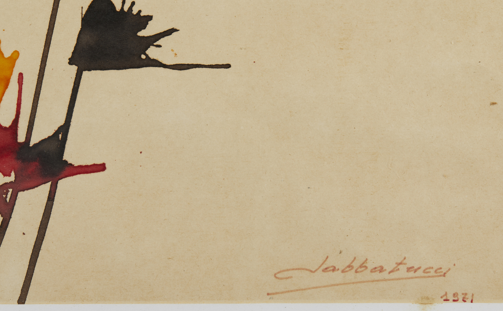 SABBATUCCI LUCIANO (1929 - 2014) Senza titolo. 1971. Gouache su carta. Cm 34,50 x 50,00. Firma in basso a destra. Cornice presente