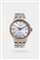 Cassa in acciaio con lunetta dorata e fondello a vista. Quadrante bianco "soleil" con indici geometrici applicati. Bracciale in acciaio e placcato con chiusura a scomparsa.