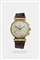 Cassa in oro con lunetta a scalino e fondello a pressione. Quadrante argento con indici geometrici e numeri arabi in rilievo. Contatore dei secondi continui ad ore 9 e dei 30 minuti ad ore 3. Cronografo con funzione flyback che permette di poter azzerare e far ripartire la cronografia in un solo movimento, premendo il tasto ad ore 4.