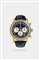 Cassa placcata con fondello in acciaio, a scatto e lunetta girevole. Quadrante nero con indici