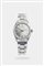 Cassa in acciaio con fondello a vite. Quadrante argento con indici geometrici applicati.