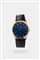 Cassa in oro, con fondello a scatto. Quadrante blu con indici geometrici applicati.