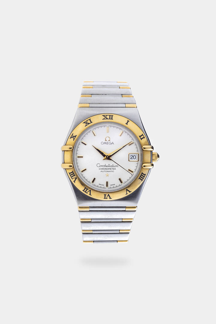 Cassa in acciaio con lunetta in oro recante incise le 12 ore e fondello in vetro. Quadrante argento guilloché indicazione centrale dei secondi continui. Bracciale integrato in acciaio e oro con chiusura a scomparsa.