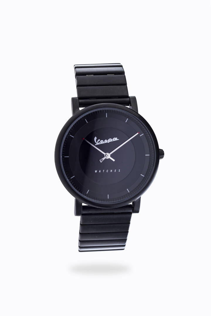 Cassa in acciaio con trattamento pvd e fondello a pressione. Quadrante nero. Bracciale pvd con chiusura clasp