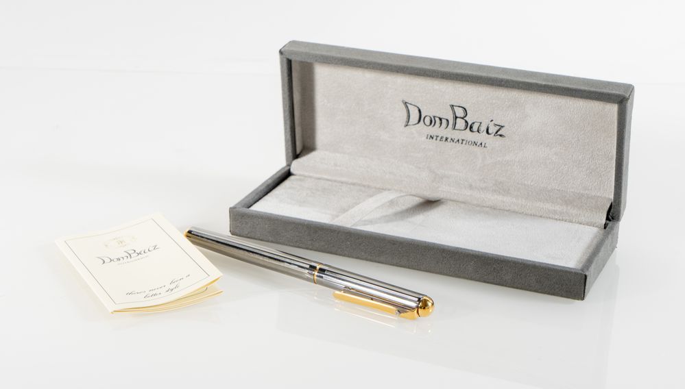 Lotto 1 | DOM BAIZ Penna stilografica in metallo argentato con dettagli in oro e...