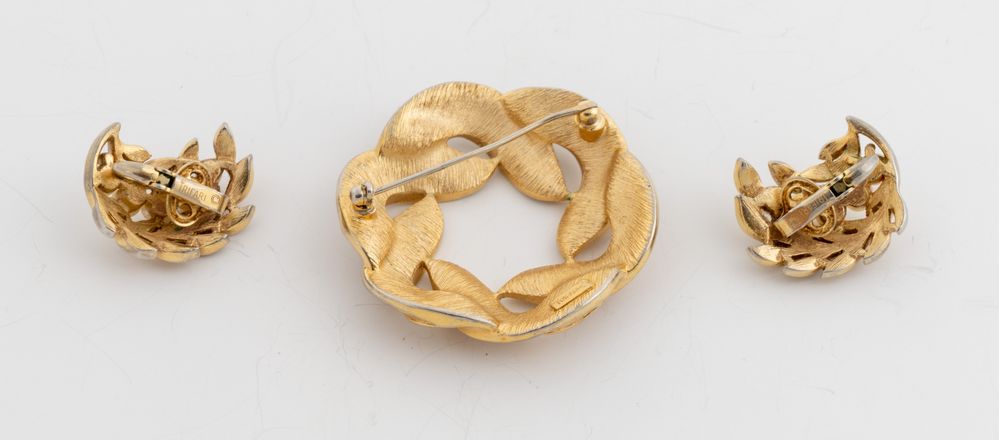 TRIFARI Parure composta da spilla e orecchini a clip in metallo dorato con...