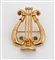 CORO Spilla a forma di lira in metallo dorato con pietre. Cm 5x4. Reca...