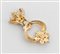 CORO Spilla con corona in metallo dorato con zirconi e pietre. Cm 7x3. Reca...