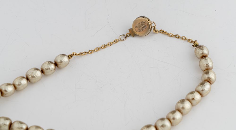 MIRIAM HASKELL Collana di perle sintetiche con ciondolo rotondo in metallo...